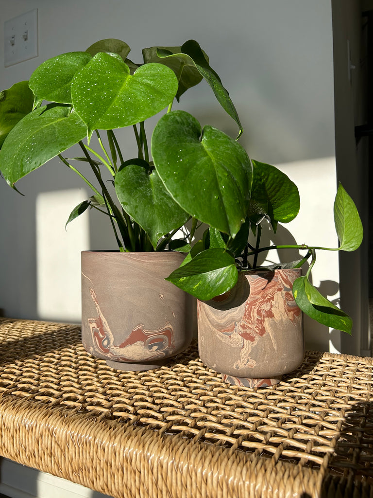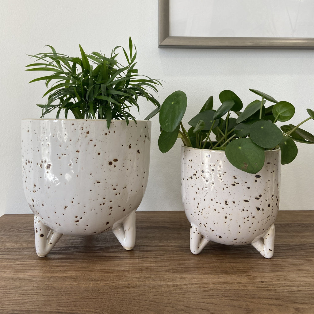 Light Grey Composite Ceramic Plant Pots with Saucers