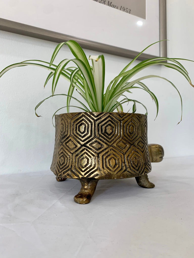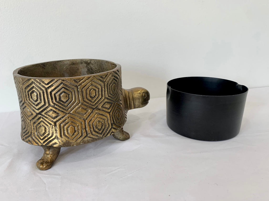Made of real brass, incorporate this stellar piece into any space to avert eyes! The planter comes with a removable black metal insert to pot the plant.