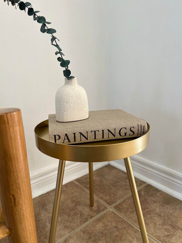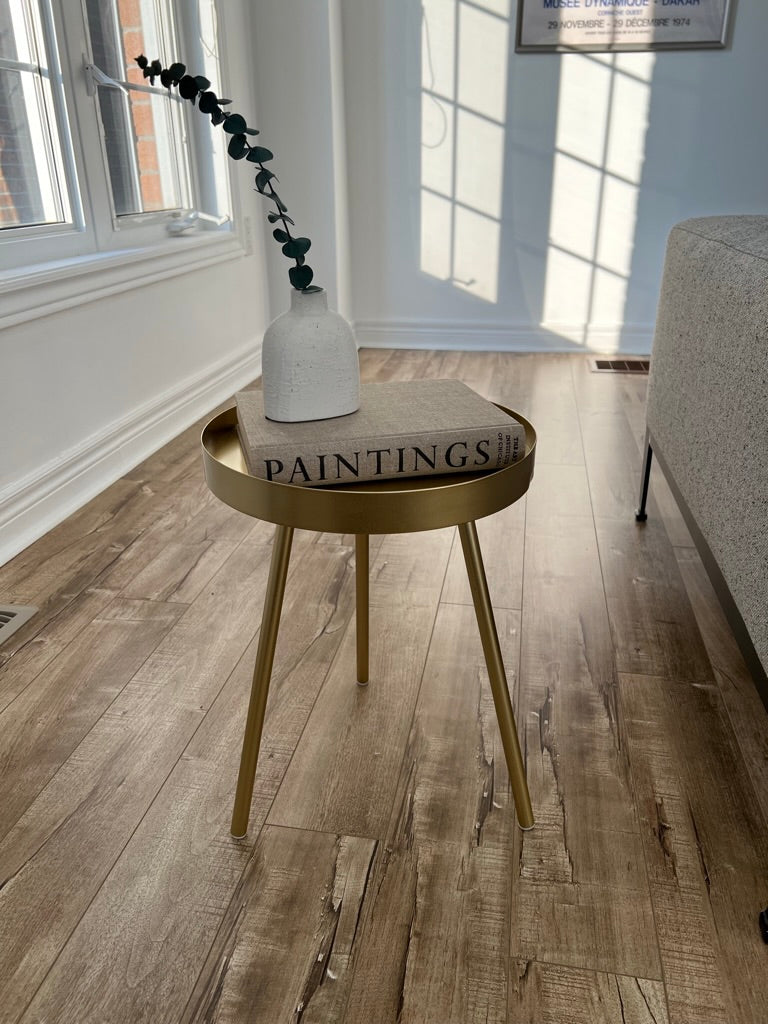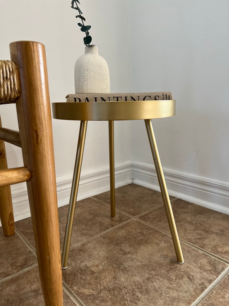 Add sparks to your space with this all-gold one-tier end/side table. Perfect for small books or as a plant stand. Lightweight and durable metal. Easy to move around with removable gold legs.