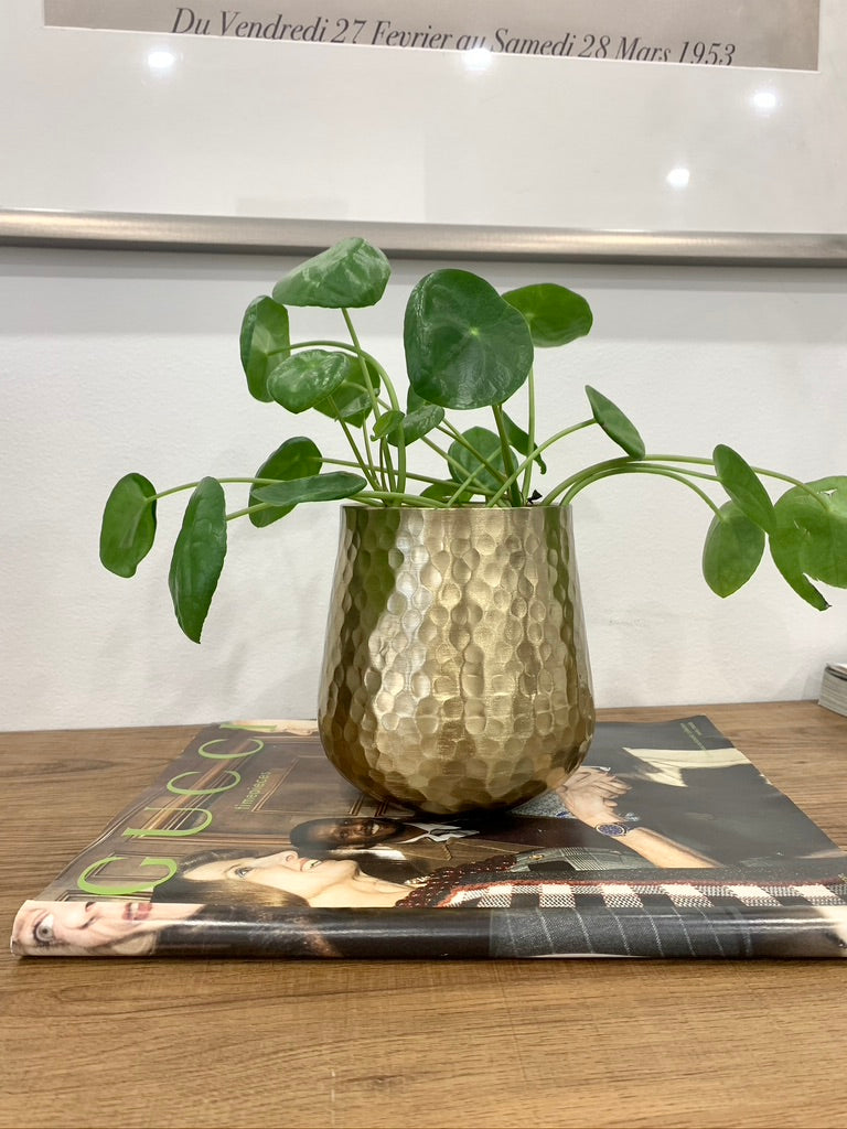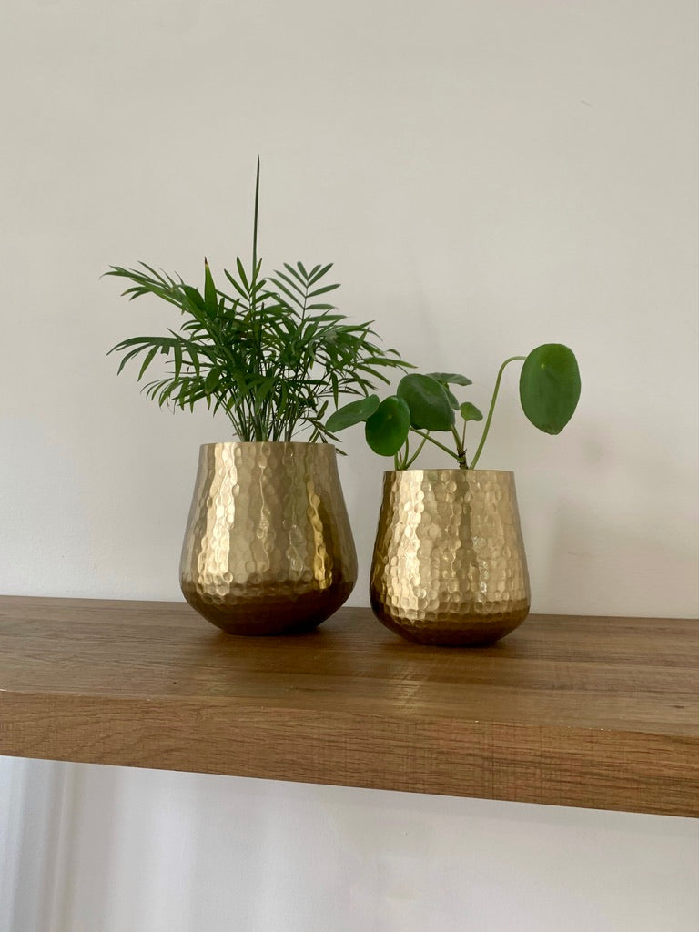 Incorporate these muted gold tabletop planters into any space to add a touch of warmth. Made of 100% metal.