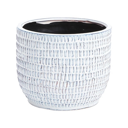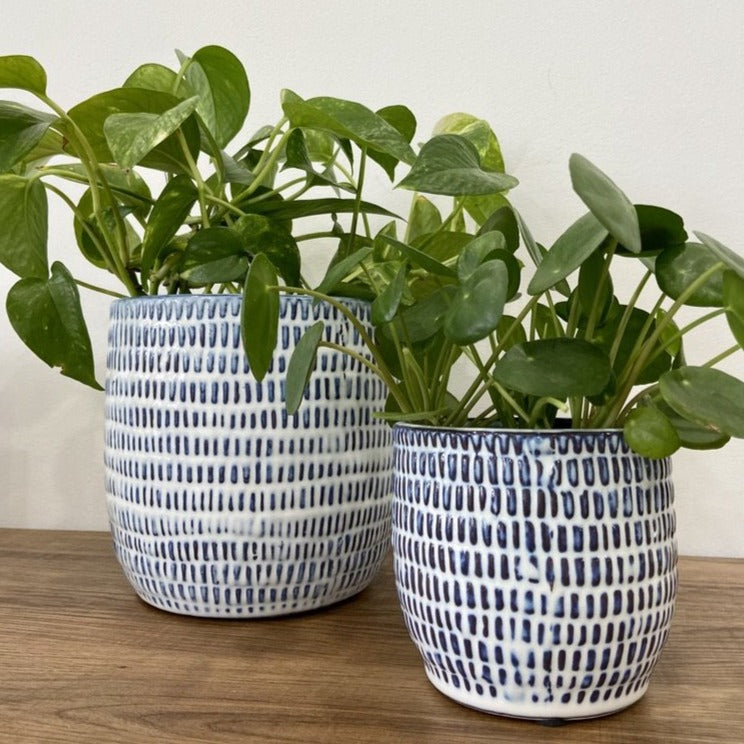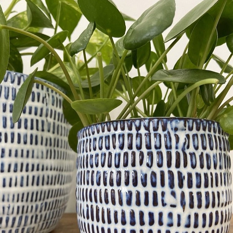 A simplistic navy blue pattern on white makes these pots the perfect addition to any minimalistic space.