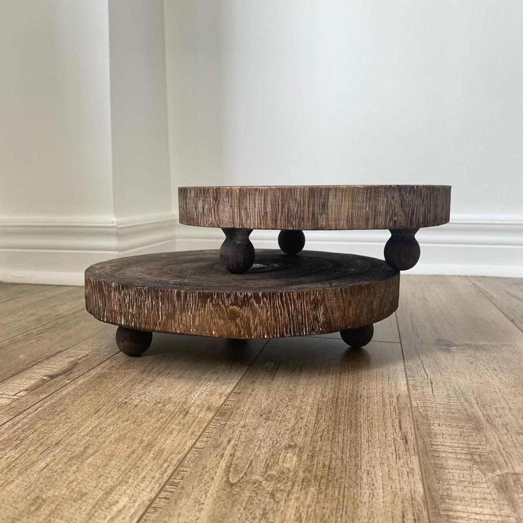 Introduce farmhouse vibes to your space with this natural accent. Made of 100% wood, these wood risers sit on sturdy legs. Can be used as a plant stand, riser, or even as a display for your new favorite trinkets.