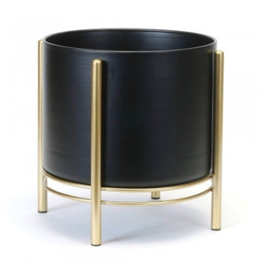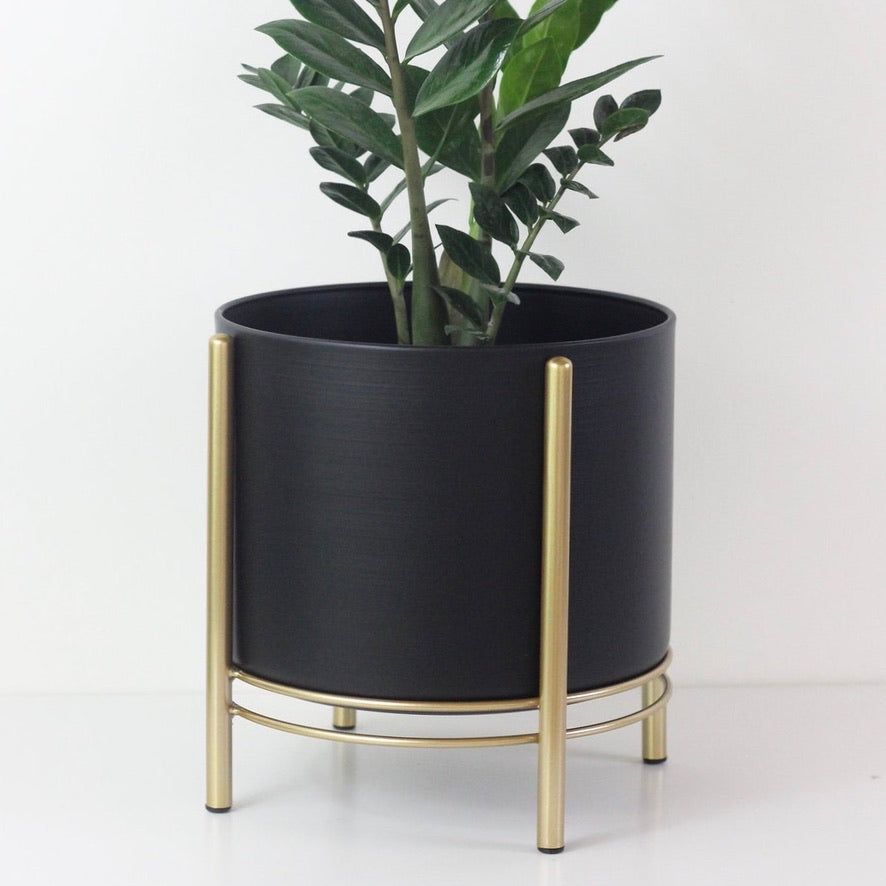 This minimalist plant pot with a gold stand is perfect for your larger plants. The metal planter has a smooth matte finish and the plant stand adds contemporary style to any space.
