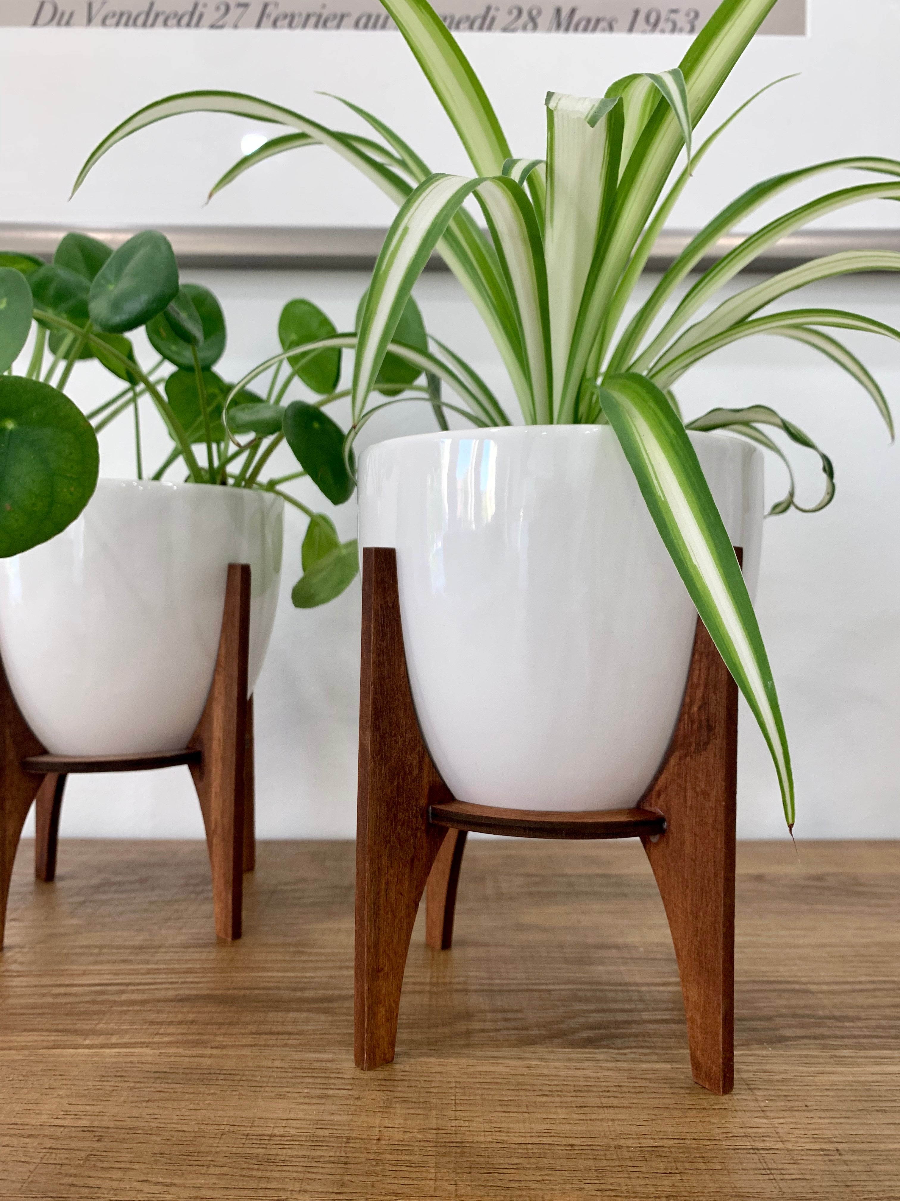 Ceramic and Canvas Wood? Sounds fresh! Just in: our famous table planters are back in stock! These minimalist ceramic planters sit on sturdy wood stands, adding a minimalist boho accent to any space.